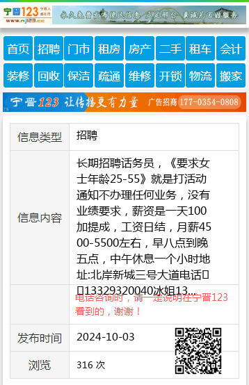 长期招聘话务员,《要求女士年龄25-55》就是打活动通知不办理任何业务,没有业绩要求,薪资是一天100加提成,工资日结,月薪4500-5500左右,早八点到晚五点,中午休息一个小时地址:北岸新城三号大道电话☎️13329320040冰姐13329320040 【电话咨询时,请一定说明在七台河信息网看到的,谢谢!】 |