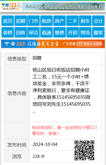 电话咨询时,请一定说明在七台河信息网看到的,谢谢!