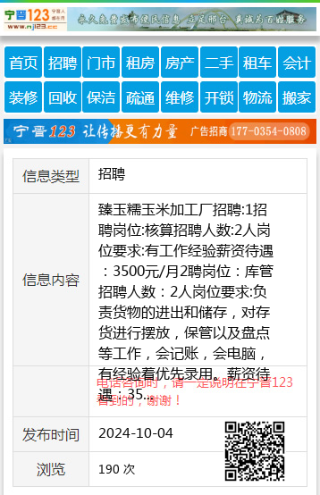 臻玉糯玉米加工厂招聘:1招聘岗位:核算招聘人数:2人岗位要求:有工作经验薪资待遇:3500元/月2聘岗位:库管招聘人数:2人岗位要求:负责货物的进出和储存,对存货进行摆放,保管以及盘点等工作,会记账,会电脑,有经验着优先录用。薪资待遇:3500元/月3招聘岗位:运营部打单员要求:女,有工作经验薪资:3000元时间:早8点-晚5点月休两天人事部电话18904642988运营部应聘电话:15846199338地址,(臻玉糯鲜食玉米加工厂)10路车,马场乾元路开发区大楼里走500米钟女士18904642988 【电话咨询时,请一定说明在七台河信息网看到的,谢谢!】 |
