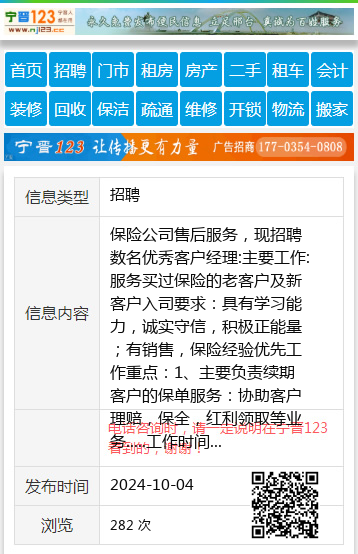 保险公司售后服务,现招聘数名优秀客户经理:主要工作:服务买过保险的老客户及新客户入司要求:具有学习能力,诚实守信,积极正能量;有销售,保险经验优先工作重点:1、主要负责续期客户的保单服务:协助客户理赔,保全,红利领取等业务.....工作时间:周一至周六,每天8:30-10:00。公司福利:终身无责底薪+各种奖励,同时享有意外、医~、养老三险保障!公司给与专业化培训,有人帮有人带,家门口的好工作,不耽误照顾老人和孩子。有想找工作或换工作的来找我!张老师15804647371 【电话咨询时,请一定说明在七台河信息网看到的,谢谢!】 |
