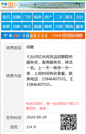 七台河忆水间洗浴招聘鞋吧服务员,客房服务员,保洁一名。上一天一夜休一天一夜,上班时间有伙食餐。联系电话:15846407555。王15846407555 【电话咨询时,请一定说明在七台河信息网看到的,谢谢!】 |