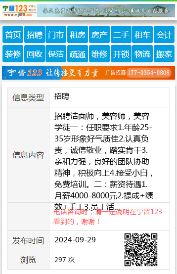 招聘洁面师,美容师,美容学徒一:任职要求1.年龄25-35岁形象好气质佳2.认真负责,诚信敬业,踏实肯干3.亲和力强,良好的团队协助精神,积极向上4.接受小白,免费培训。二:薪资待遇1.月薪4000-8000元2.提成+绩效+手工3.员工活动丰富,不定期聚餐,旅游联系人:朱经理联系电话:17744498777郑女士15846403913 |