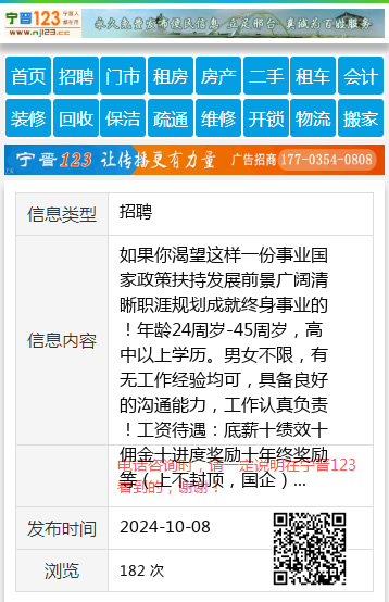 如果你渴望这样一份事业国家政策扶持发展前景广阔清晰职涯规划成就终身事业的!年龄24周岁-45周岁,高中以上学历。男女不限,有无工作经验均可,具备良好的沟通能力,工作认真负责!工资待遇:底薪十绩效十佣金十进度奖励十年终奖励等(上不封顶,国企)工作时间早8:00—上午10:30要求形象好气质佳,工作认真负责,咨询电话.微信同步;13945589688合适您就来!我们为您提供宝贵的发展空间!月薪过万元不是梦!非诚勿扰!名额有限!富13945589688 【电话咨询时,请一定说明在七台河信息网看到的,谢谢!】 |
