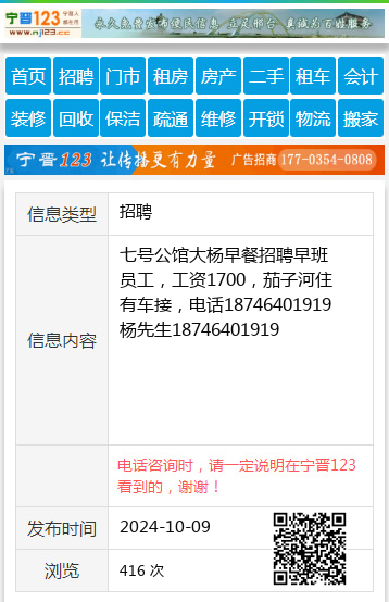 七号公馆大杨早餐招聘早班员工,工资1700,茄子河住有车接,电话18746401919杨先生18746401919