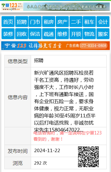 新兴矿通风区招聘瓦检员若干名工资高,待遇好,劳动强度不大,工作时长八小时,上下班有通勤车接送,国有企业扣五险一金,要求身体健康,视力正常,无职业病的年龄30至45周岁11点半以后打电话找我,非诚勿扰宋先生15804647022 【电话咨询时,请一定说明在七台河信息网看到的,谢谢!】 |