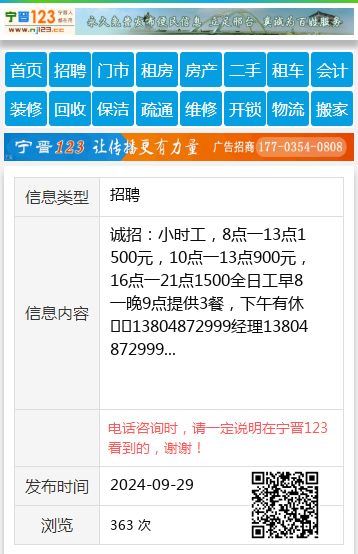 诚招:小时工,8点一13点1500元,10点一13点900元,16点一21点1500全日工早8一晚9点提供3餐,下午有休☎️13804872999经理13804872999 【电话咨询时,请一定说明在七台河信息网看到的,谢谢!】 |
