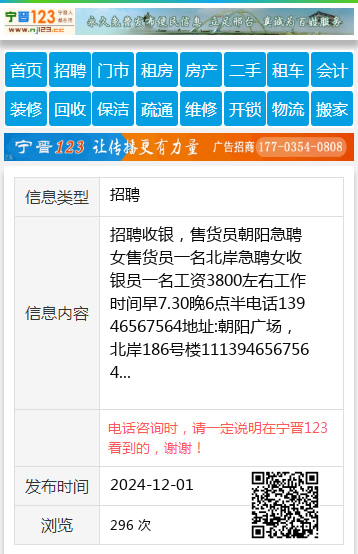 电话咨询时,请一定说明在七台河信息网看到的,谢谢!