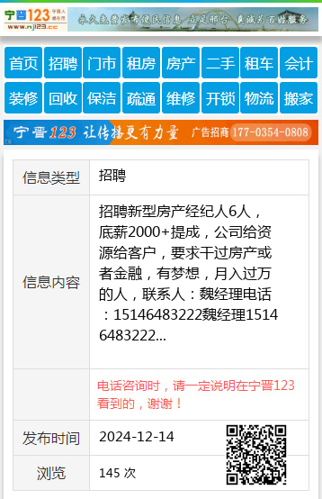 招聘新型房产经纪人6人,底薪2000+提成,公司给资源给客户,要求干过房产或者金融,有梦想,月入过万的人,联系人:魏经理电话:15146483222魏经理15146483222 【电话咨询时,请一定说明在七台河信息网看到的,谢谢!】 |