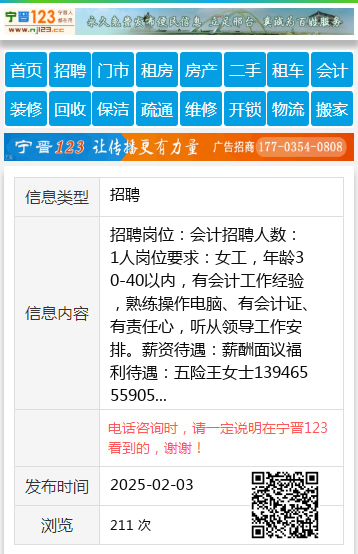 招聘岗位:会计招聘人数:1人岗位要求:女工,年龄30-40以内,有会计工作经验,熟练操作电脑、有会计证、有责任心,听从领导工作安排。薪资待遇:薪酬面议福利待遇:五险王女士13946555905 【电话咨询时,请一定说明在七台河信息网看到的,谢谢!】 |