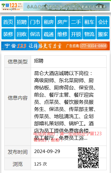 昆仑大酒店诚聘以下岗位:高级厨师、东北菜厨师、厨房砧板、厨房荷台、保安员、前台、餐厅主管、餐厅迎宾员、点菜员、餐饮服务员服务生、保洁员、传菜部主管、传菜员、地毯清洗工、企划部婚礼策划师、锅炉工。酒店为员工提供免费宿舍楼、员工餐厅,免费员工浴池等各项福利待遇,欢迎你的加入。王女士13946555328