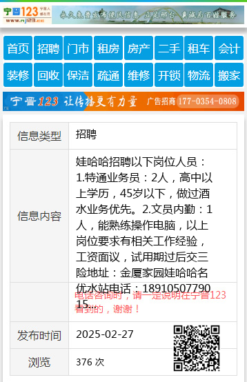 娃哈哈招聘以下岗位人员:1.特通业务员:2人,高中以上学历,45岁以下,做过酒水业务优先。2.文员内勤:1人,能熟练操作电脑,以上岗位要求有相关工作经验,工资面议,试用期过后交三险地址:金厦家园娃哈哈名优水站电话:1891050779015046407588小陀螺15046407588 【电话咨询时,请一定说明在七台河信息网看到的,谢谢!】 |
