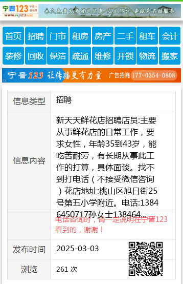 新天天鲜花店招聘店员:主要从事鲜花店的日常工作,要求女性,年龄35到43岁,能吃苦耐劳,有长期从事此工作的打算,具体面谈。找不到打电话(不接受微信咨询)花店地址:桃山区旭日街25号第五小学附近。电话:13846450717孙女士13846450717 【电话咨询时,请一定说明在七台河信息网看到的,谢谢!】 |