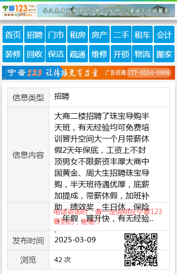 大商二楼招聘了珠宝导购半天班,有无经验均可免费培训晋升空间大一个月带薪休假2天年保底,工资上不封顶男女不限薪资丰厚大商中国黄金、周大生招聘珠宝导购,半天班待遇优厚,底薪加提成,带薪休假,加班补助,绩效奖,生日休,保险,年假,晋升快,有无经验均可,男女不限,勤奋有责任心,工作上不封顶,欢迎加入刘店长18145417779 【电话咨询时,请一定说明在七台河信息网看到的,谢谢!】 |