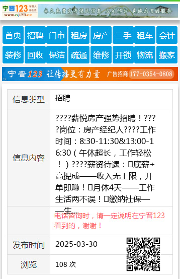 ????薪悦房产强势招聘!????岗位:房产经纪人????工作时间:8:30-11:30&13:00-16:30(午休超长,工作轻松!)????薪资待遇:✔底薪+高提成——收入无上限,开单即赚!✔月休4天——工作生活两不误!✔缴纳社保——生活无忧!????我们期待这样的你:✅热爱销售,沟通能力强;✅有房产经验优先,但无经验可带薪上岗,一对一免费培训;✅目标感强,想挑战高XIN!????加入我们,你将获得:✔专业培训,快速上手;✔优质客户资源,开单更容易;✔团队氛围超棒,赚钱更快乐!????机会不等人!快来加入薪悦房产,一起实现财富自由!**????速联:18714641100(微信同号)????地址:桃山区奋斗路第六小学东门对面????高XIN不是梦,行动才能赢!马上加入,开启你的赚钱之旅!????薪悦18714641100 【电话咨询时,请一定说明在七台河信息网看到的,谢谢!】 |