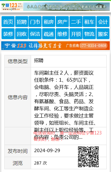 车间副主任2人,薪资面议任职条件:1、65岁以下,会电脑、会开车,人品端正,尽职尽责、头脑灵活;2、有氨基酸、食品、药品、发酵车间、化工等生产制造企业工作经验,要求做过主管领导,如班组长、车间主任、副主任以上职位经验等。工作内容:负责公司的规章制度建设与管理、生产现场管理、6S管理、生产设备管理、生产安全管理、部门行政管理等工作;2、全面控制、协调生产部门的人员管理及各项生产活动;3、负责生产线的产能分析,确保生产计划的合理性,并负责对制造部的资源配备和生产能力的评估工作;4、下达生产计划和任务,安排和控制生产作业进度;5、跟踪生产情况、产品需求、生产过程、产值目标等,按时完成生产目标;6、及时对生产异常做出反应,发现问题及时追踪,并提出合理建议;7、参与提高生产效率和改善产品质量的行动计划与实施;8、监控规范操作方法,执行公司6S规范,确保生产现场的安全和清洁;9、组织对企业生产设备的例行管理并合理调拨、分配,办理生产设备的折旧、报损、报废事宜;10、编制年度生产安全计划,严格执行生产安全管理制度,确保各类设备的安全运行;各级均有上升通道:普工-技能工-高级工-班长-组长-副主任-主任。入职转正后缴纳五险+餐补+交通补,厂内可提供食宿,市内有通勤车。外地求职者入职满三个月报销路费,外地人提供夫妻房间,提供三餐食宿,每年1次探亲假。有意者联系(8:00-16:00联系):联系电话:13359796578简历投递邮箱:317022404@qq.com。于13359796578 【电话咨询时,请一定说明在七台河信息网看到的,谢谢!】 |