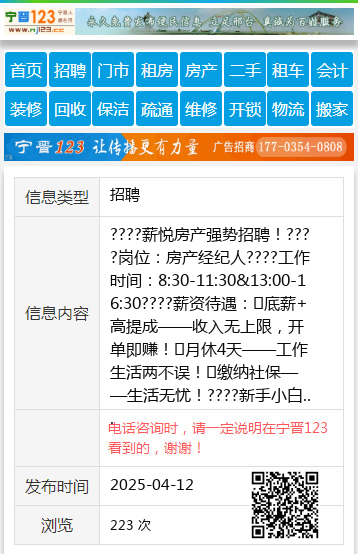 ????薪悦房产强势招聘!????岗位:房产经纪人????工作时间:8:30-11:30&13:00-16:30????薪资待遇:✔底薪+高提成——收入无上限,开单即赚!✔月休4天——工作生活两不误!✔缴纳社保——生活无忧!????新手小白带薪培训????速联:18304666062(微信同号)????地址:桃山区奋斗路第六小学东门对面颜经理18304666062 【电话咨询时,请一定说明在七台河信息网看到的,谢谢!】 |