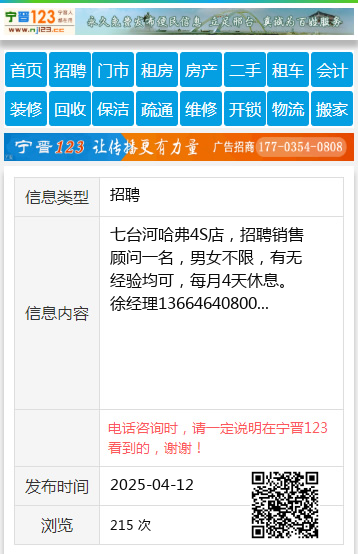 【电话咨询时,请一定说明在七台河信息网看到的,谢谢!】