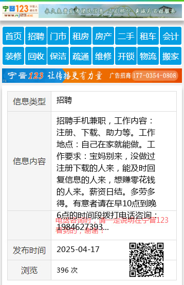 招聘手机兼职,工作内容:注册、下载、助力等。工作地点:自己在家就能做。工作要求:宝妈别来,没做过注册下载的人来,能及时回复信息的人来,想赚零花钱的人来。薪资日结。多劳多得。有意者请在早10点到晚6点的时间段拨打电话咨询:19846273931(非诚勿扰)J晴19846273931 【电话咨询时,请一定说明在七台河信息网看到的,谢谢!】 |