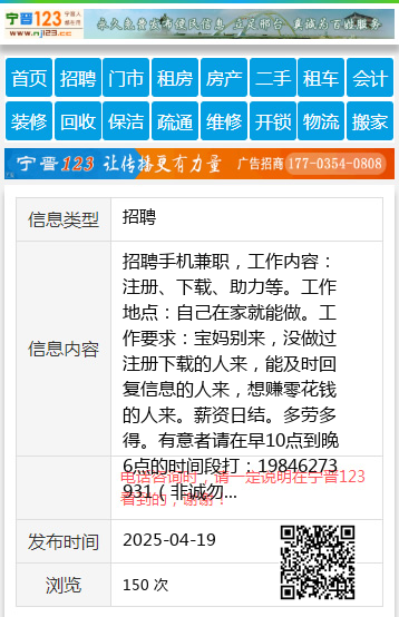 招聘手机兼职,工作内容:注册、下载、助力等。工作地点:自己在家就能做。工作要求:宝妈别来,没做过注册下载的人来,能及时回复信息的人来,想赚零花钱的人来。薪资日结。多劳多得。有意者请在早10点到晚6点的时间段打:19846273931(非诚勿扰)J晴19846273931 【电话咨询时,请一定说明在七台河信息网看到的,谢谢!】 |