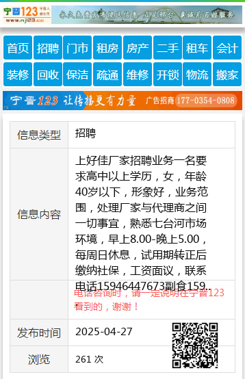 上好佳厂家招聘业务一名要求高中以上学历,女,年龄40岁以下,形象好,业务范围,处理厂家与代理商之间一切事宜,熟悉七台河市场环境,早上8.00-晚上5.00,每周日休息,试用期转正后缴纳社保,工资面议,联系电话15946447673副食15946447673 【电话咨询时,请一定说明在七台河信息网看到的,谢谢!】 |