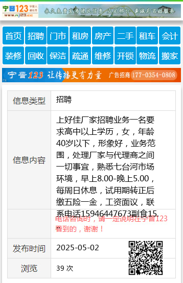 上好佳厂家招聘业务一名要求高中以上学历,女,年龄40岁以下,形象好,业务范围,处理厂家与代理商之间一切事宜,熟悉七台河市场环境,早上8.00-晚上5.00,每周日休息,试用期转正后缴五险一金,工资面议,联系电话15946447673副食15946447673 【电话咨询时,请一定说明在七台河信息网看到的,谢谢!】 |
