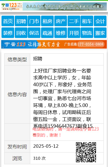 上好佳厂家招聘业务一名要求高中以上学历,女,年龄40岁以下,形象好,业务范围,处理厂家与代理商之间一切事宜,熟悉七台河市场环境,早上8.00-晚上5.00,每周日休息,试用期转正后缴五险一金,工资面议,联系电话15946447673副食15946447673 【电话咨询时,请一定说明在七台河信息网看到的,谢谢!】 |