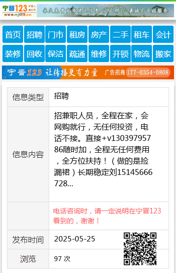 招兼职人员,全程在家,会网购就行,无任何投资,电话不接。直接+v13039795786随时加,全程无任何费用,全方位扶持!(做的是捡漏裙)长期稳定刘15145666728 【电话咨询时,请一定说明在七台河信息网看到的,谢谢!】 |