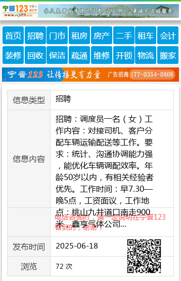 招聘:调度员一名(女)工作内容:对接司机、客户分配车辆运输配送等工作。要求:统计、沟通协调能力强,能优化车辆调配效率。年龄50岁以内,有相关经验者优先。工作时间:早7.30—晚5点,工资面议,工作地点:桃山九井道口南走900米,鑫亨气体公司。联系电话:13804875800刘先生13804875800 【电话咨询时,请一定说明在七台河信息网看到的,谢谢!】 |