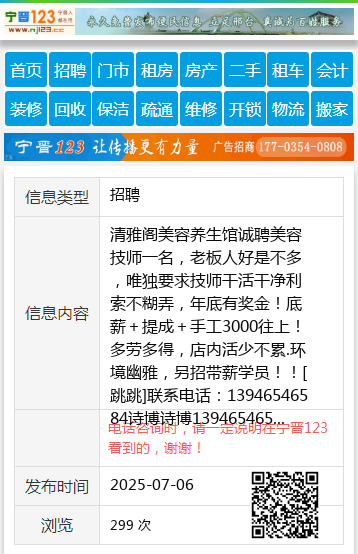 清雅阁美容养生馆诚聘美容技师一名,老板人好是不多,唯独要求技师干活干净利索不糊弄,年底有奖金!底薪+提成+手工3000往上!多劳多得,店内活少不累.环境幽雅,另招带薪学员!![跳跳]联系电话:13946546584诗博诗博13946546584 【电话咨询时,请一定说明在七台河信息网看到的,谢谢!】 |