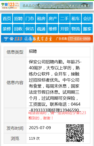 保安公司招聘内勤。年龄25-40周岁,大专以上学历,熟练办公软件,会开车,接触过招投标者优先。中午公司有食堂,每周末休息,国家法定节假日休息。试用期三个月,过试用期可交保险,工资面议。联系电话:0464-8393333周经理13946590020 【电话咨询时,请一定说明在七台河信息网看到的,谢谢!】 |
