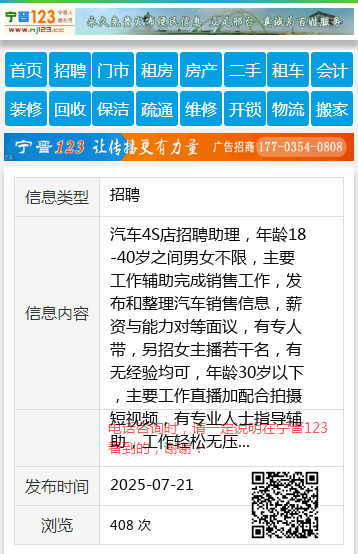 汽车4S店招聘助理,年龄18-40岁之间男女不限,主要工作辅助完成销售工作,发布和整理汽车销售信息,薪资与能力对等面议,有专人带,另招女主播若干名,有无经验均可,年龄30岁以下,主要工作直播加配合拍摄短视频,有专业人士指导辅助,工作轻松无压力,能力与薪资挂钩面议!姜经理19804647755 【电话咨询时,请一定说明在七台河信息网看到的,谢谢!】 |