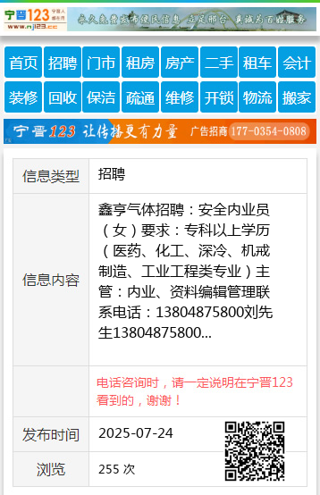 鑫亨气体招聘:安全内业员(女)要求:专科以上学历(医药、化工、深冷、机戒制造、工业工程类专业)主管:内业、资料编辑管理联系电话:13804875800刘先生13804875800 【电话咨询时,请一定说明在七台河信息网看到的,谢谢!】 |