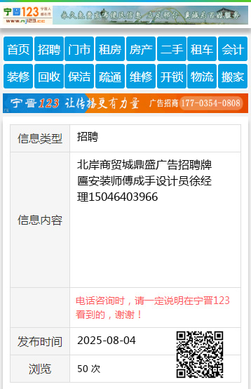 北岸商贸城鼎盛广告招聘牌匾安装师傅成手设计员徐经理15046403966