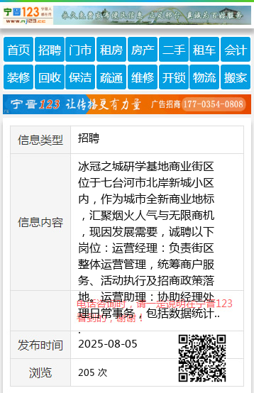 冰冠之城研学基地商业街区位于七台河市北岸新城小区内,作为城市全新商业地标,汇聚烟火人气与无限商机,现因发展需要,诚聘以下岗位:运营经理:负责街区整体运营管理,统筹商户服务、活动执行及招商政策落地。运营助理:协助经理处理日常事务,包括数据统计、商户沟通及文档整理,要求细心严谨,熟练办公软件。宣传策划:负责街区活动策划,需具备创意策划能力,熟悉新媒体者优先。我们提供优质平台、完善配套及发展空间,期待与怀揣梦想的你共筑商业新篇!工作地点:北岸新城77号楼联系电话:15046403600周女士15046403600 【电话咨询时,请一定说明在七台河信息网看到的,谢谢!】 |