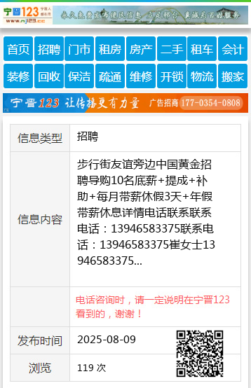 步行街友谊旁边中国黄金招聘导购10名底薪+提成+补助+每月带薪休假3天+年假带薪休息详情电话联系联系电话:13946583375联系电话:13946583375崔女士13946583375 【电话咨询时,请一定说明在七台河信息网看到的,谢谢!】 |