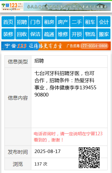 【电话咨询时,请一定说明在七台河信息网看到的,谢谢!】