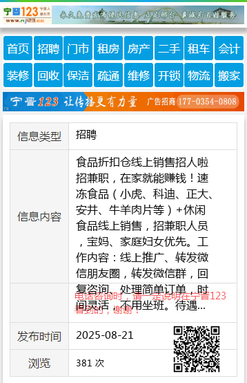食品折扣仓线上销售招人啦招兼职,在家就能赚钱!速冻食品(小虎、科迪、正大、安井、牛羊肉片等)+休闲食品线上销售,招兼职人员,宝妈、家庭妇女优先。工作内容:线上推广、转发微信朋友圈,转发微信群,回复咨询、处理简单订单,时间灵活,不用坐班。待遇:高提成,多劳多得,产品好卖,新手易上手。想利用碎片时间增收?微信/电话:[15046406678]等你来!张经理15046406678 【电话咨询时,请一定说明在七台河信息网看到的,谢谢!】 |